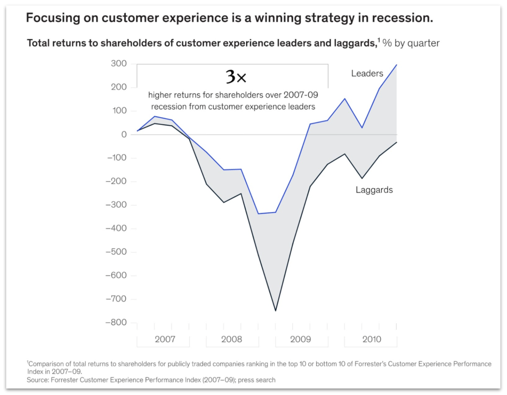 Une étude de Forrester a montré que les entreprises qui investissaient le plus dans l’expérience client pendant la crise de 2008 avaient été beaucoup plus rentables.