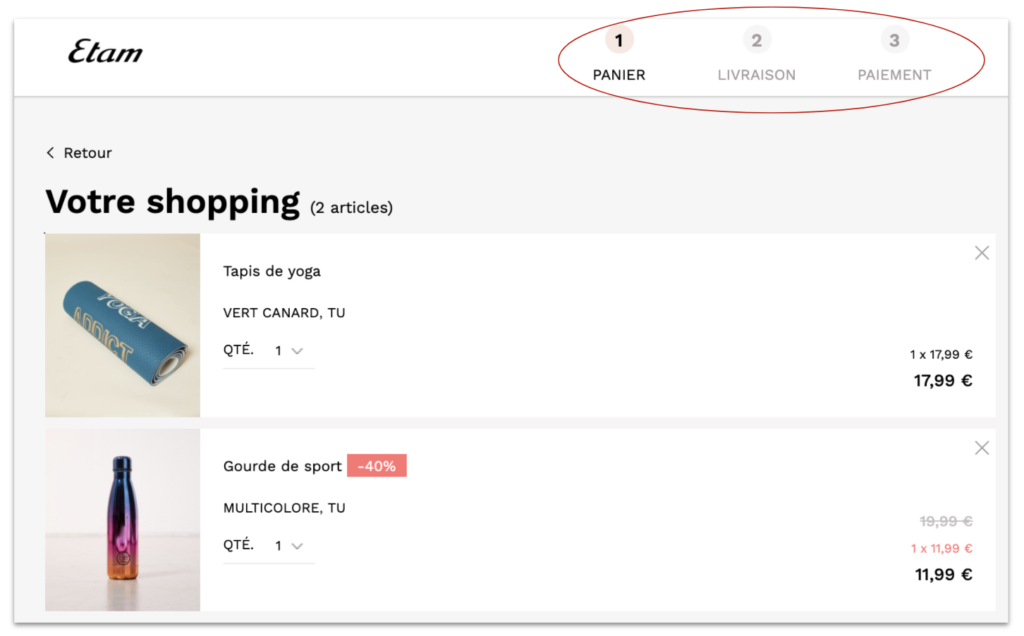 - Ajouter un objet au panier. Dans ce cas, le retour visuel indique à l’utilisateur que l’article a été ajouté au panier.