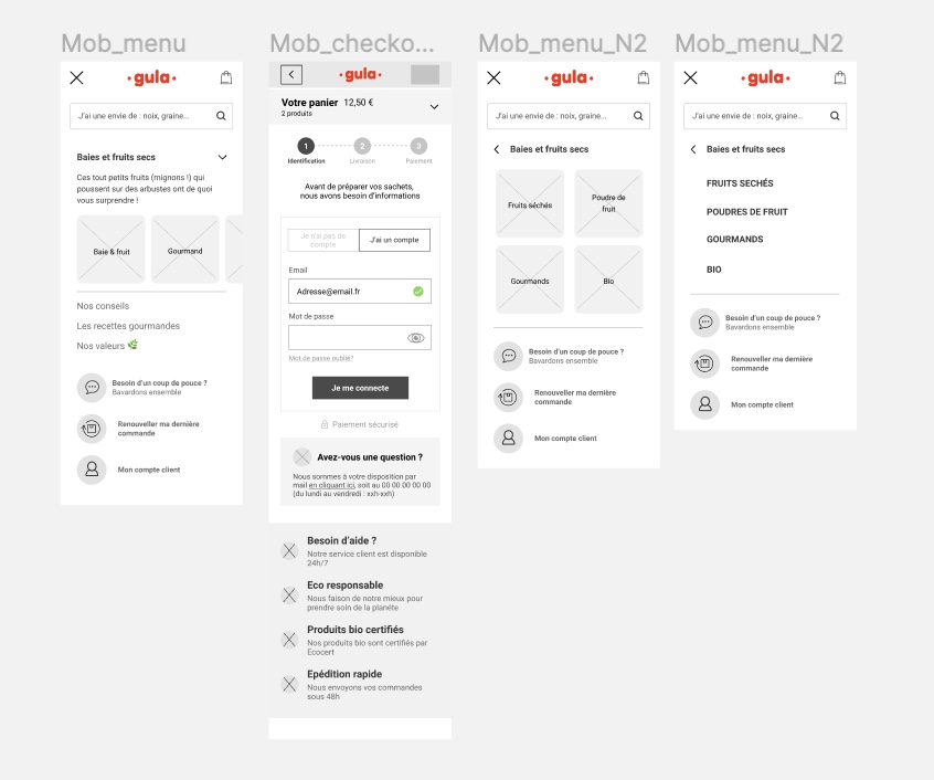 Ce chantier a permis de passer à la conception et au design des pages du nouveau site. Il s’agit d’une mission classique pour Wexperience qui consiste en la création de wireframes, suivi d’un prototype de site soumis à des tests utilisateurs, d’intégration du design graphique et pour finir, ce sont les maquettes graphiques du site à la fois sur desktop et sur mobile qui ont été livrées à Gula pour intégration.