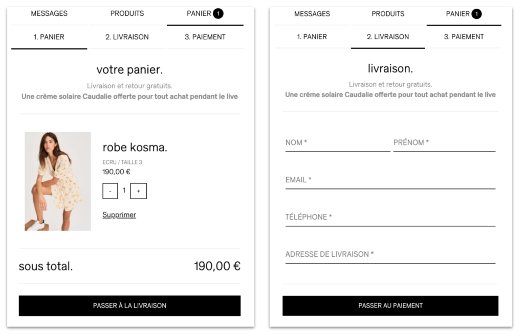 - Quelle est l’utilité d’insérer le tunnel de conversion (panier, livraison et paiement) sur la même page que live ?