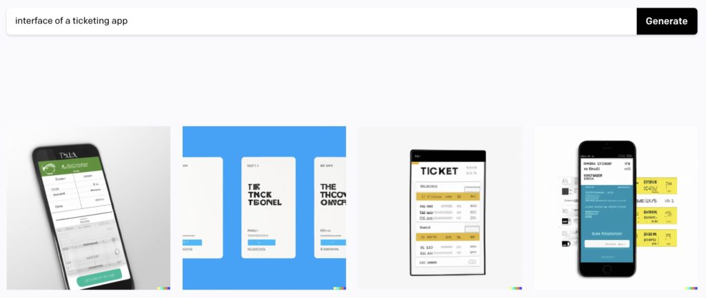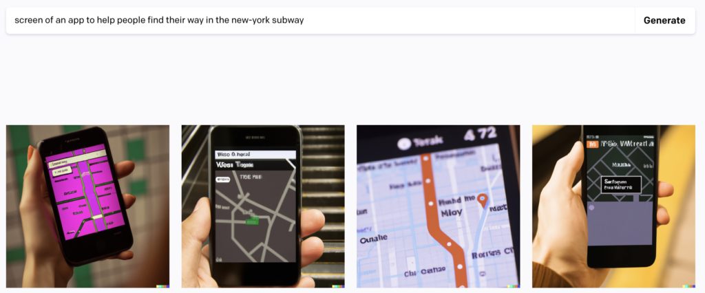Autre tentative de design d’app sur Dall E 2. Là encore, le résultat est sans intérêt, car il ne répond à aucune contrainte.
