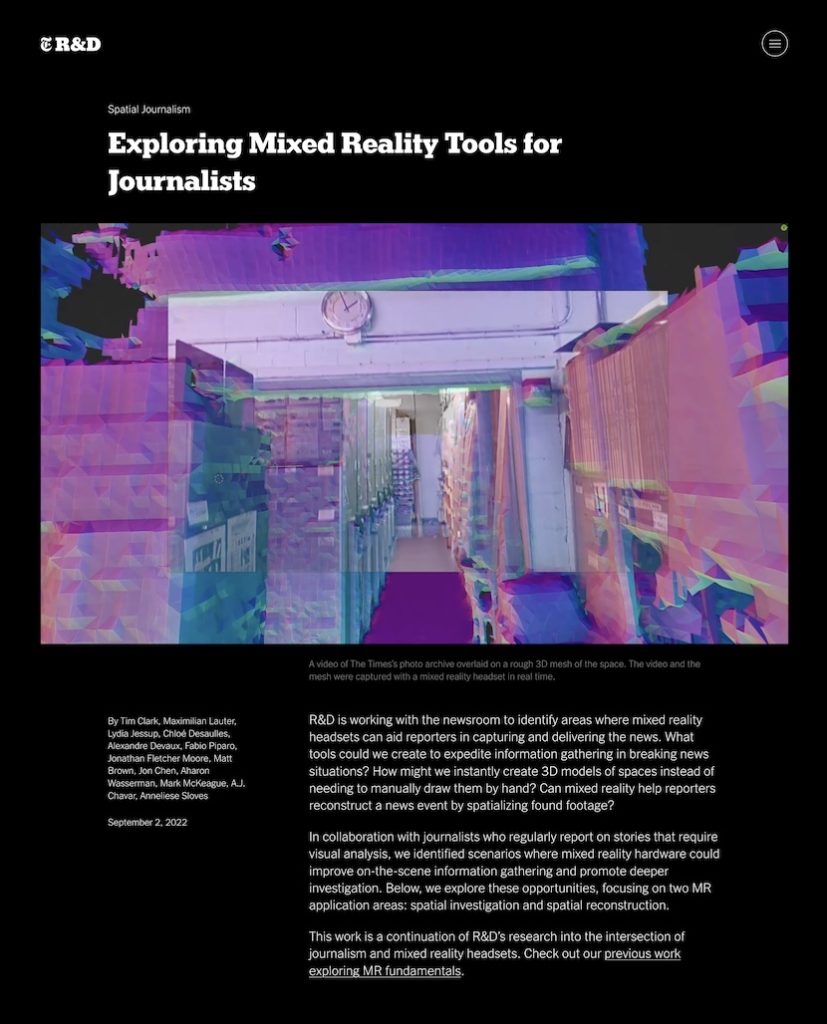 Evidemment, cela reste des expérimentations, mais, même si elles montrent que les véritables applications ne sont pas pour tout de suite, il n’en reste pas moins qu’elles pourraient bien à terme aider les journalistes à créer de nouvelles formes d’informations plus immersives… et donc, pourquoi pas, s’insérer dans le futur Métavers, si jamais un jour il arrive. Mais l’intérêt est surtout de pouvoir permettre de raconter des récits d’une autre manière, dans lequel « le lecteur » (et je mets « lecteur », alors que sans doute, il ne lira plus grand chose) « vivra » l’actualité en étant plongé en son sein, ce qui sera entièrement nouveau.