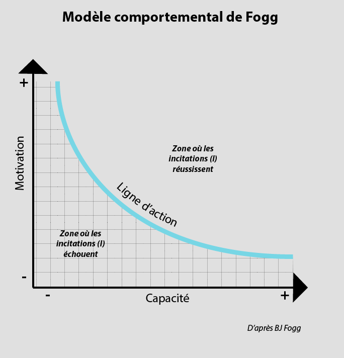 Donner de la valeur au produit consiste en cela : non seulement, vous devez avoir une véritable offre de service, mais vous devez la rendre la plus simple à obtenir, la plus facile à utiliser qui soit, en vous appuyant notamment sur le modèle comportemental de Fogg qui prédit qu’un comportement se déclenche lorsque l’effort demandé pour réaliser une action et une motivation suffisante sont présents. On peut aussi parler de « valeur perçue » : plus la valeur perçue en échange de l’effort est suffisante et grande pour l’utilisateur, plus il sera motivé à agir.