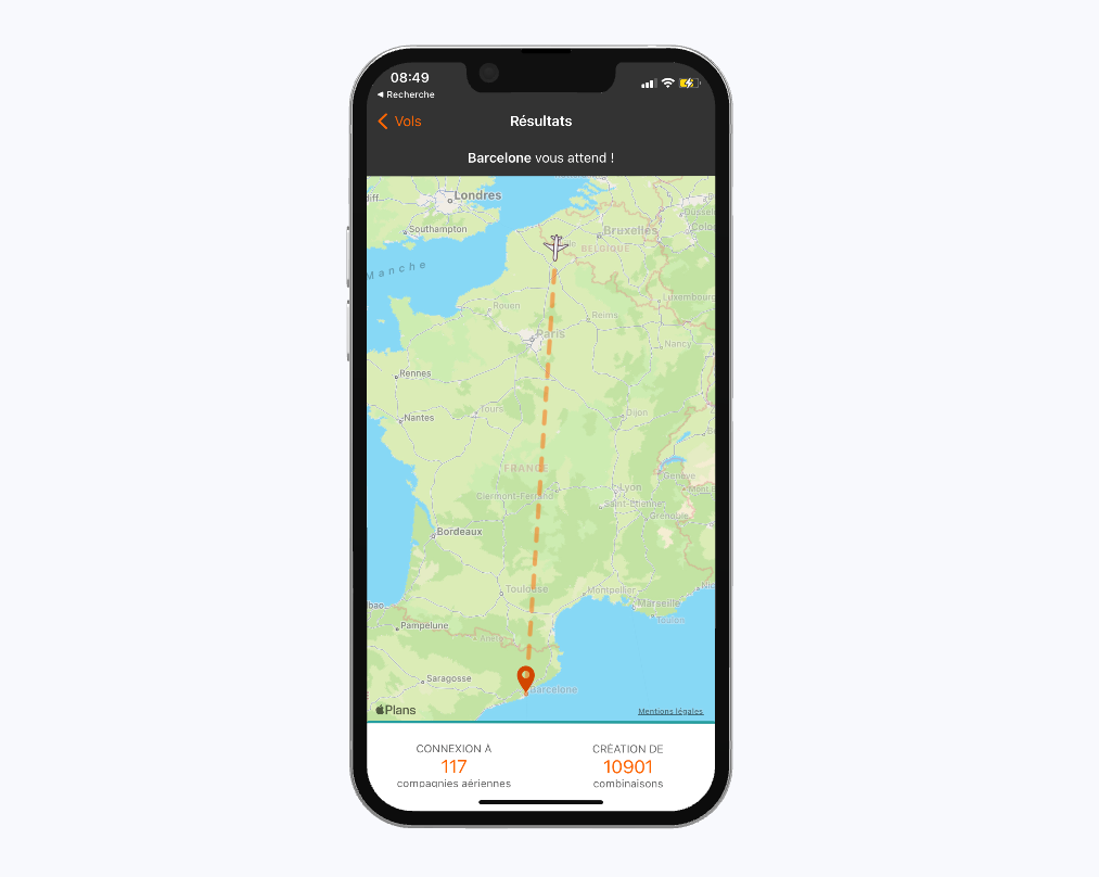 - Faire ressentir la puissance et les gains engendrés par l’utilisation du service en instillant à petites doses des frictions dans l’UX. Un cas typique de cela est l’affichage d’un écran interstitiel d’attente lors d’une recherche. Même si, en réalité, un résultat de recherche peut être obtenu en quelques millisecondes, donner l’impression que cela demande du temps valorise l’action du service.