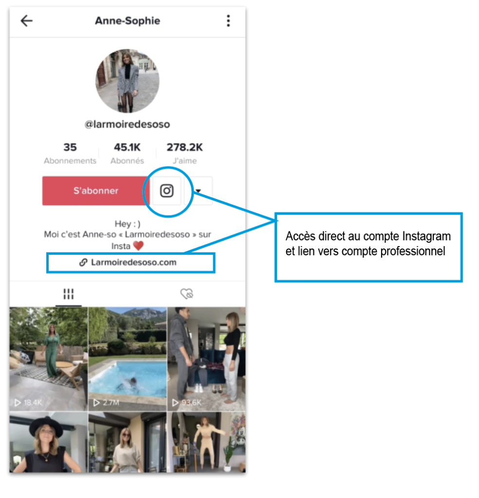 En plus de cela, l’application offre aux utilisateurs la possibilité d’ajouter à leur compte d’autres profils réseaux sociaux, ce qui permet de promouvoir facilement une chaîne YouTube, un profil Instagram ou une page professionnelle. Certains utilisateurs affirment que cette fonctionnalité leur a permis d’attirer plus de trafic sur leurs autres réseaux sociaux !