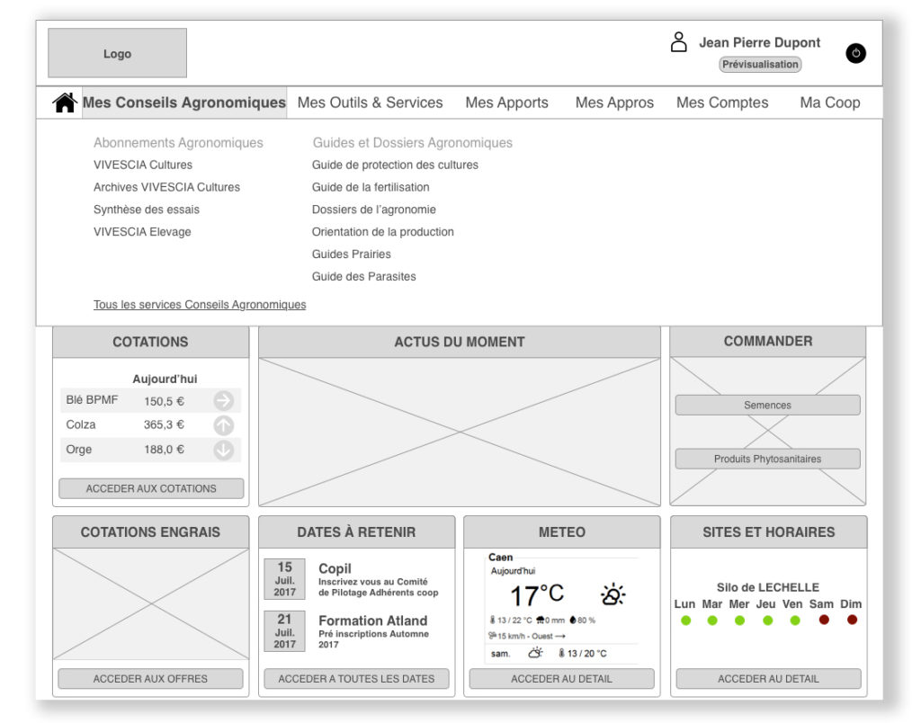 Autre étape essentielle de cette 1ère phase, l’organisation de Tests Utilisateurs sur l’extranet existant avec des agriculteurs dont les profils ont été soigneusement choisis pour correspondre aux différents profils d’utilisateurs.