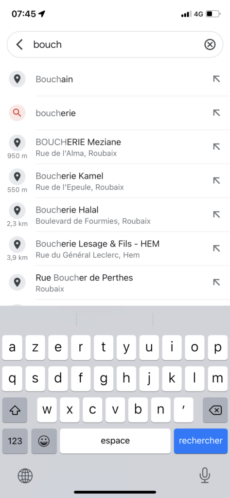 Ici, deux parmi d’autres moyen de Google Maps pour simplifier l’acte de recherche et éviter la frappe au clavier, difficile et sujette à erreurs sur mobile.
