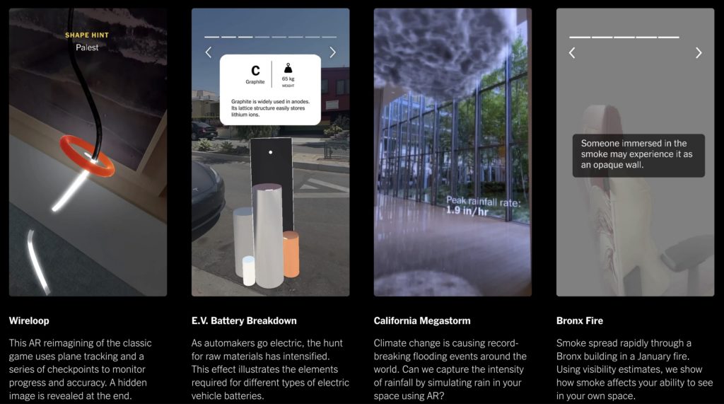Cela fait longtemps, très longtemps que le New York Times explore la réalité augmentée pour les besoins du récit journalistique. Et le travail réalisé est impressionnant. A ce jour, le journal compte plus de 30 articles l’utilisant, ce qui en fait un leader mondial dans le domaine.