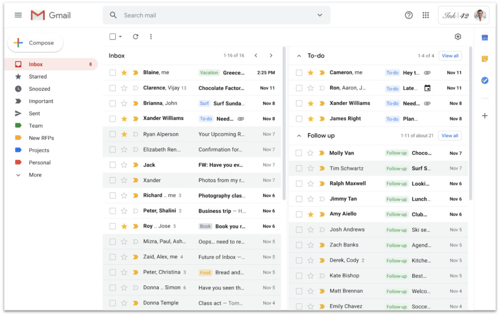 Si la navigation verticale est moins courante, elle est cependant rencontrée sur de nombreuses applications de bureau. Alors, s’il s’agit de la navigation la moins utilisée, les utilisateurs en sont tout de même familiers dans la mesure où certains l’utilisateurs au quotidien, comme notamment avec les applications d’e-mail ou de discussion telles que Gmail, Hotmail ou encore Slack, Teams 😉