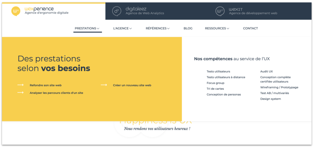- Testez vos menus auprès de vos utilisateurs. Il peut être difficile d’évaluer objectivement son propre travail. Bah oui, vous n’êtes pas l’un de vos utilisateurs. Et c’est pour cette raison, qu’il est essentiel de procéder à des tests utilisateurs afin de déterminer les différents problèmes qui peuvent surgir lors de la navigation de vos utilisateurs. Et en cette période de Covid, sachez qu’il est tout à fait possible de réaliser des tests à distance 😉 Alors, n’hésitez plus !